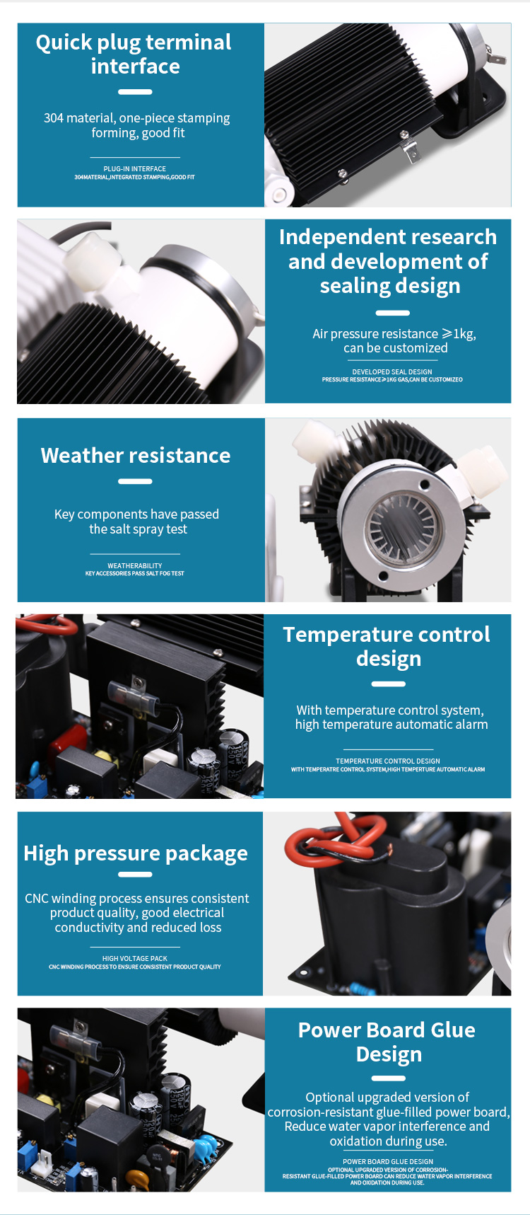 Ozone generator functionality can be customized based on the customer's specific application needs and functional requirements. We can design and manufacture ozone machines that meet our customers' specific needs according to their requirements.